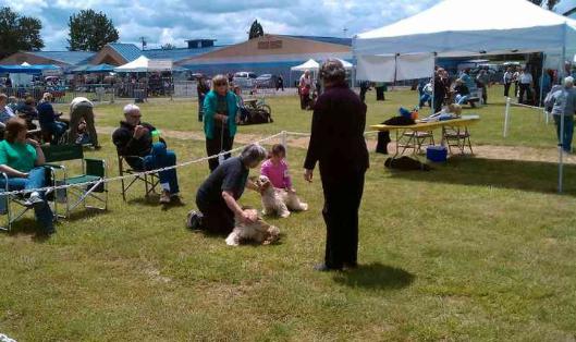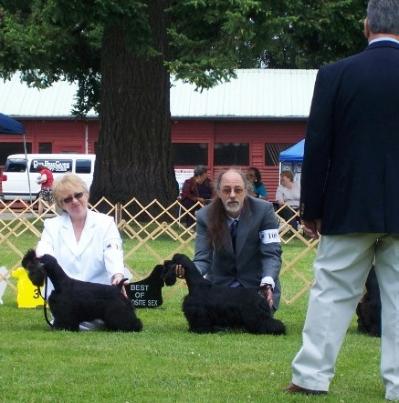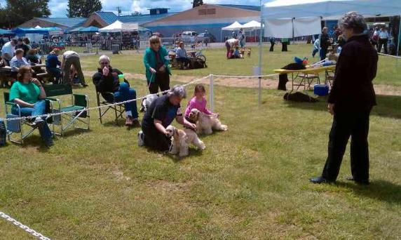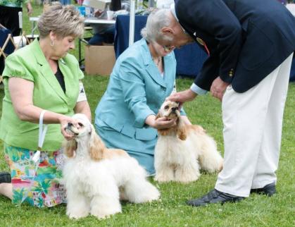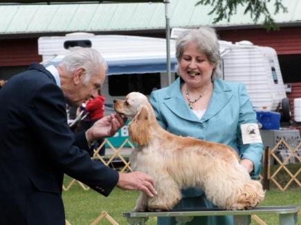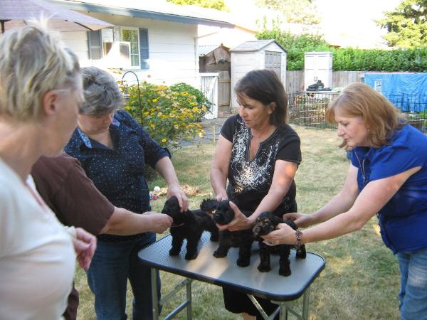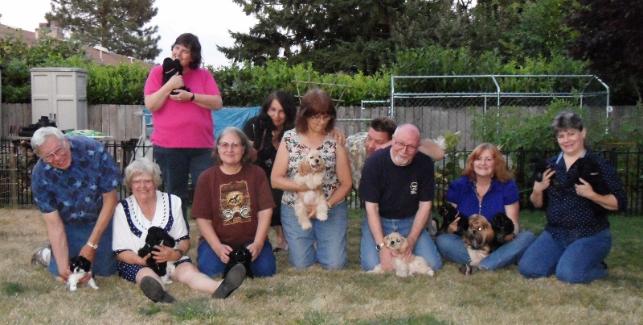 Group Puppy Evaluation In August 2011 members of the Fort Vancouver Club and a member from the Washington State Cocker Club got together at the home of Bill and Cindy Mixon and evaluated several litters of puppies. It was a fun time and they enjoyed seeing all the young puppies that would soon be hitting the Show Ring. Back row from left to right: Russ Coffman, Lori Goudy, Marci Wilson and Dan Wilson. Front row is Marge Coffman, Dianna Mann, Cindy Mixon, Bill Mixon, Tanda Shirod, and Connie Schauerman. Ron Mann was "handling" the camera. |