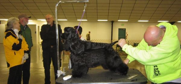 Groomed and shown by Lee Walster at the Washington State Cocker Specialty in March 2013 while still sporting his long tail! Below are more candids from that show. |