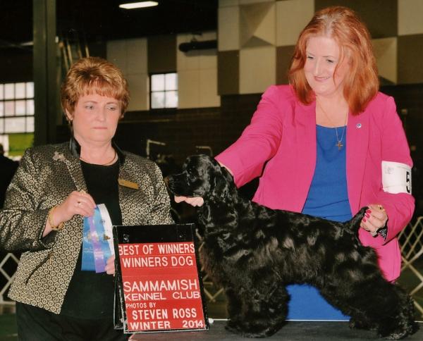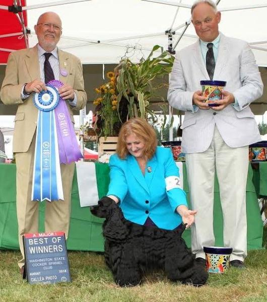 Best of Winners for a Major at the Washington State Cocker Specialty under breeder Judge Mr. Ed Piner August 2014 |