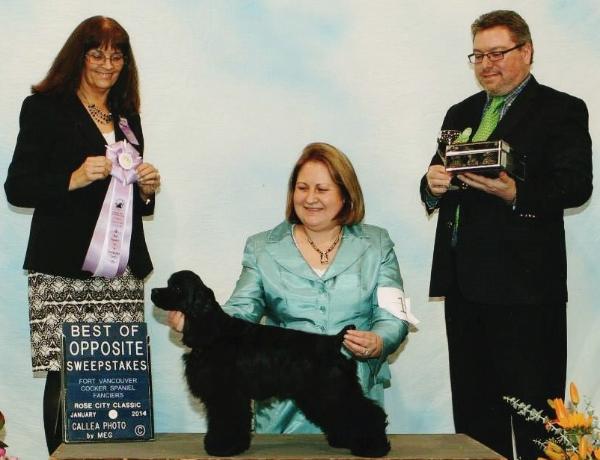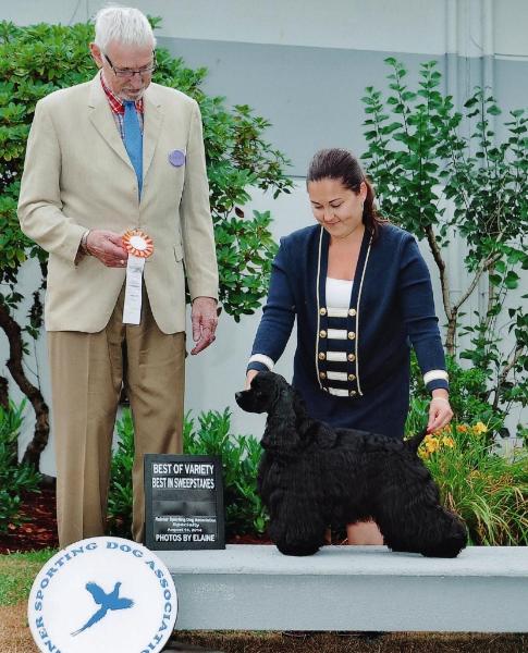 Best In Sweepstakes at the Rainier Sporting Dog Club the day before the Washington State Specialty under breeder Mr. Jerry Moon August 2014. |