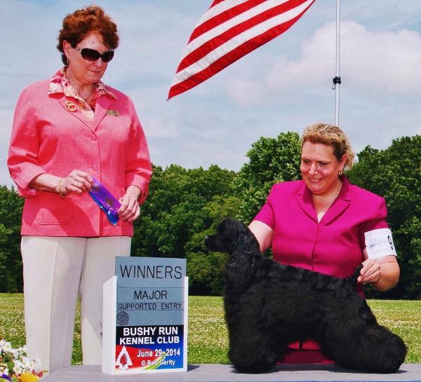Winning a 3 point Major shown by Stacey Dobemier at the Bushy Run Kennel Club June 29th 2014. |
