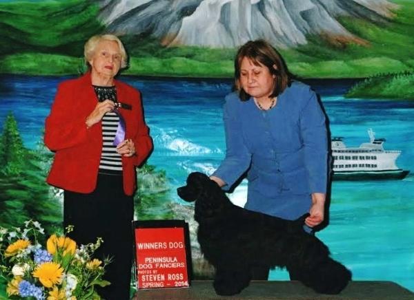 Winners Dog at Peninsula Dog Fanciers in March 2014 under breeder judge Mrs. Marilyn Spacht. |